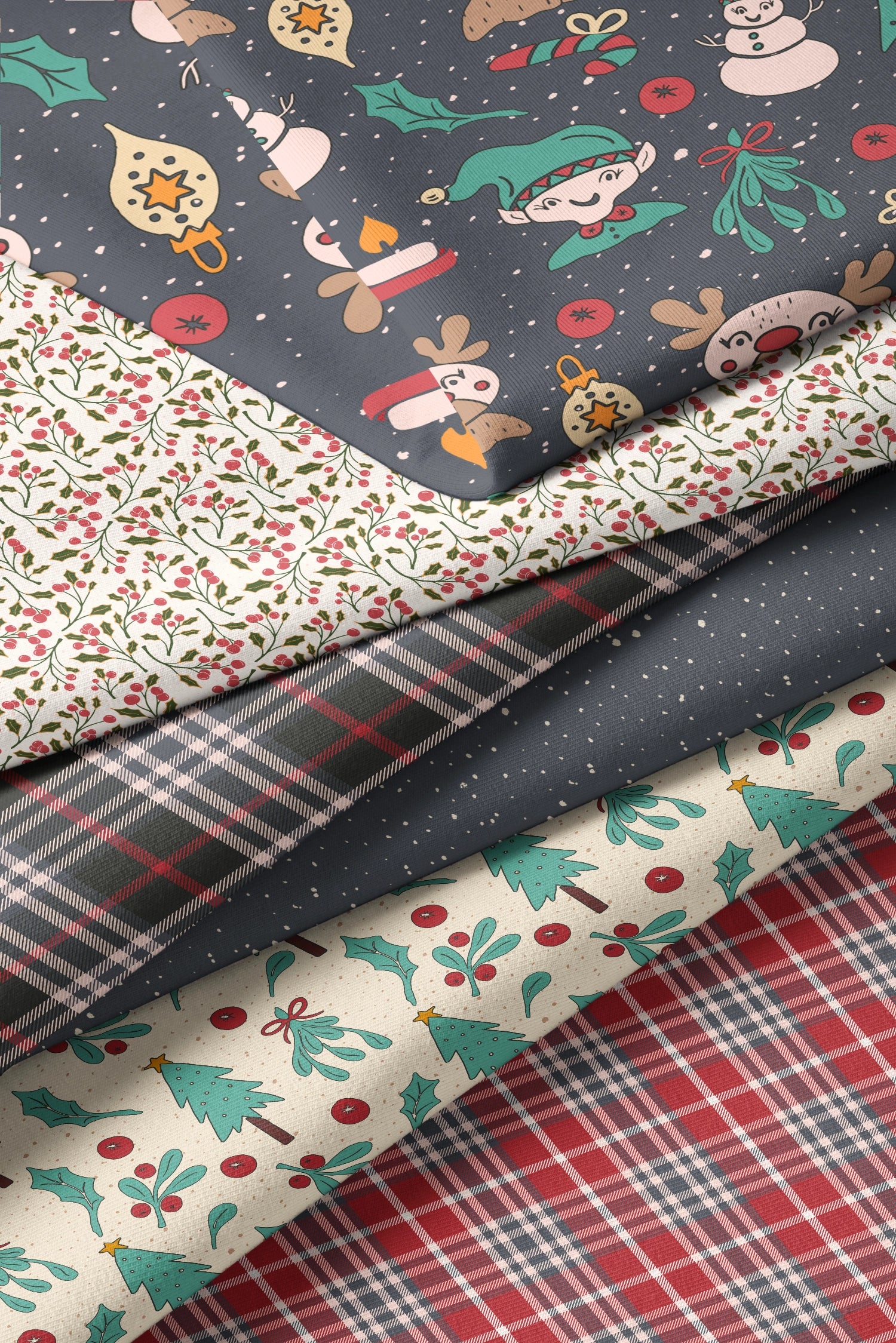 Holly Jolly Christmas is a playful set of festive pattern designs in bright, cheerful tones, filled with elves, reindeer, snowmen, holly berries, plaids, stripes, and snowy dots. Whimsical and fun, these designs are perfect for kids’ projects and anyone who loves a cute, light-hearted take on seasonal style.