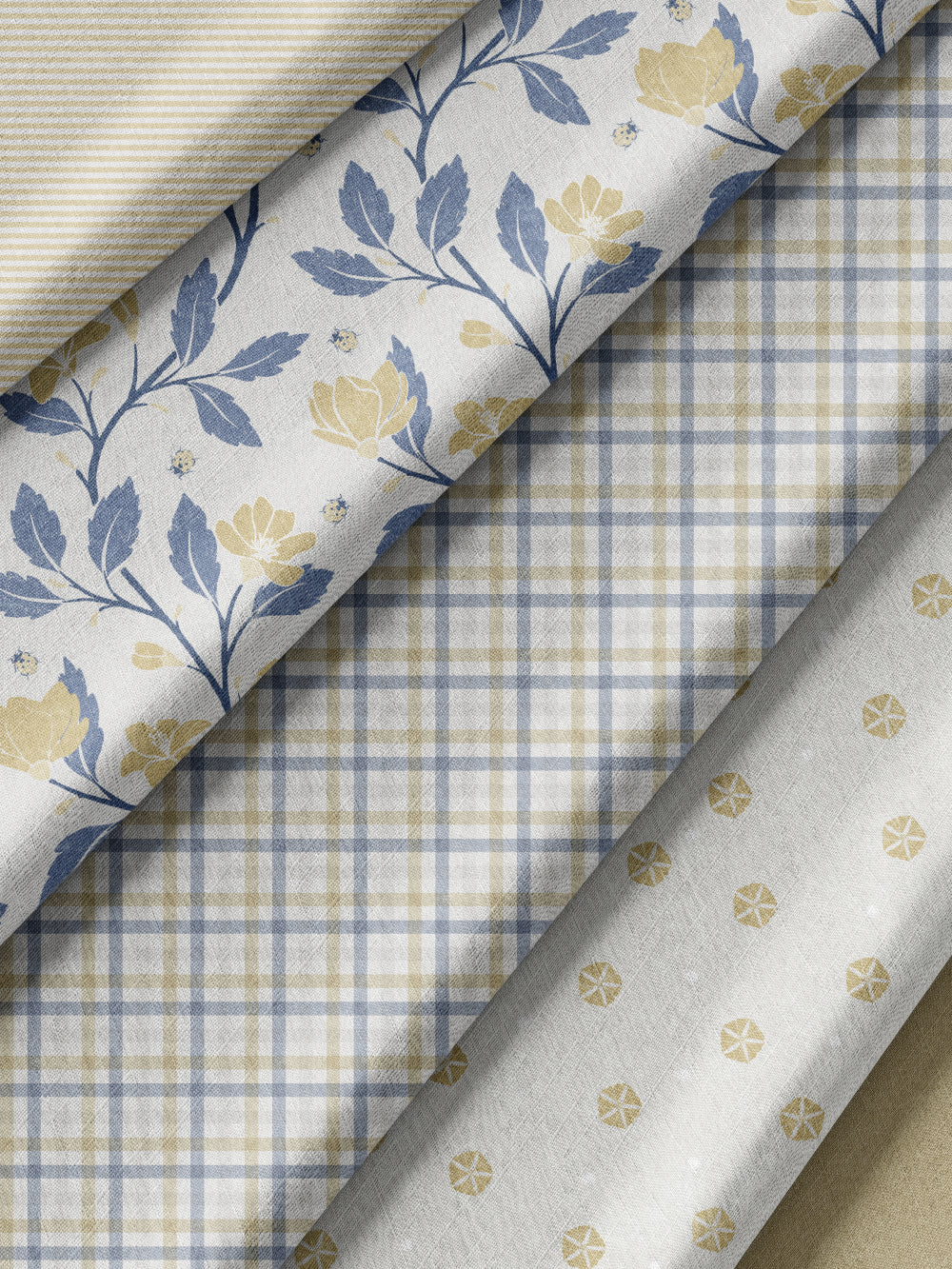The English Country Cottage Collection is inspired by the charm of a rambling garden — a mix of climbing florals, classic checks, neat stripes, and scattered blooms. Designed to bring warmth and character into everyday spaces, the patterns capture that easy blend of homely comfort and timeless style.