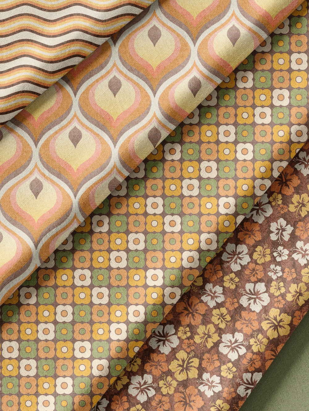 Bring a touch of vintage cool into your next project with bold geometrics, warm earthy tones, and playful patterns inspired by the 1970s. Perfect for upholstery, quilting, curtains, or standout sewing projects, these fabrics are printed sustainably to order.