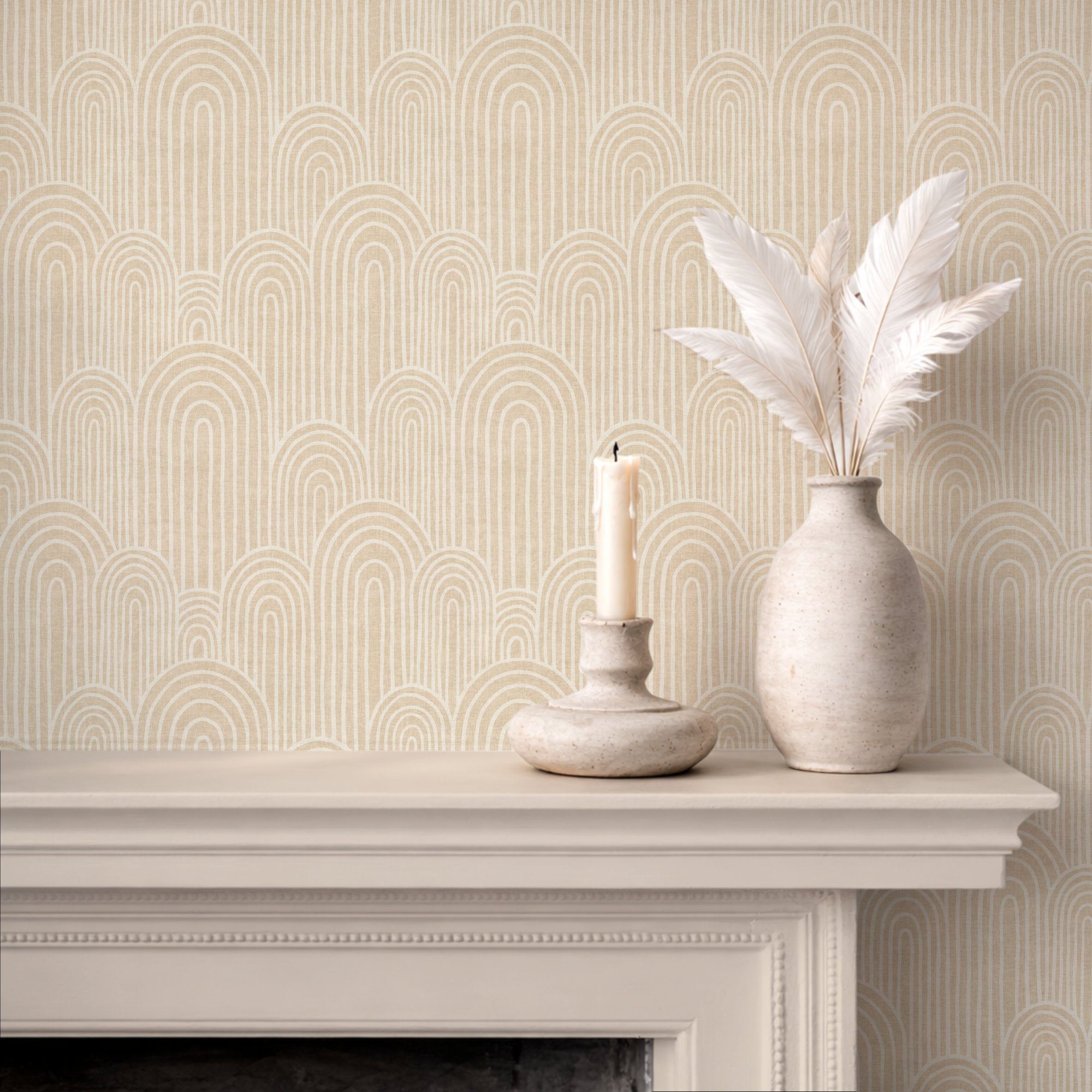 This design started life with art deco in mind, but the hand-drawn lines and muted palette took it somewhere quieter. It sits naturally in Scandinavian and Japandi interiors, the kind of spaces where pattern earns its place by being restful rather than restless.